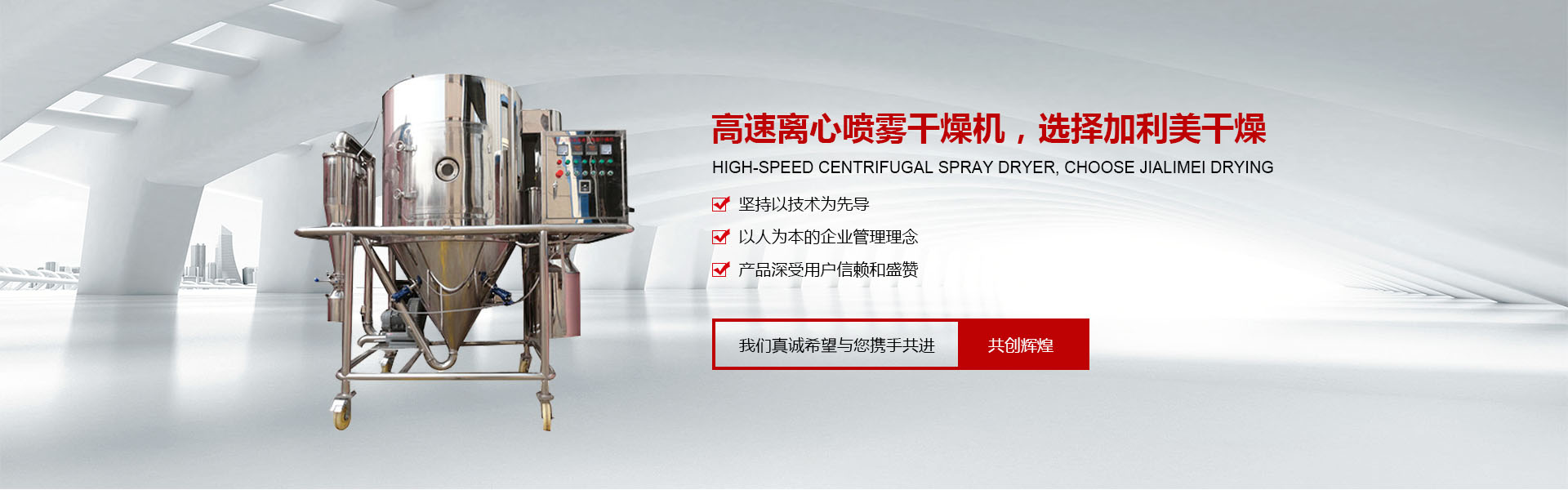 - 常州市加利美干燥設備有限公司是從事噴霧干燥機,閃蒸干燥機,雞精生產線和制粒機械的研究、開發(fā)及制造的專業(yè)性廠家,是目 前國內生產干燥設備品種較多、規(guī)格較全的企業(yè)。 我公司吸收國內外的先進技術與經驗,嚴格按國家GMP的要求設計、開發(fā)、生產、安裝和服務于一體,同時嚴格按照ISO9001國際質量體系標準實施,確保了產品質量。在干燥設備的開發(fā)、研究中不斷地創(chuàng)新及改造,設計制造了一系列工藝進步且節(jié)能的產品。